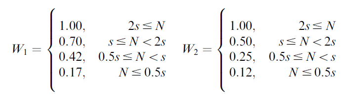 아래 가중치 함수는 제 연구실 논문에서 사용한 값입니다. 구체적인 수치만 조금 다르고 가중치 부여 방식은 동일합니다.