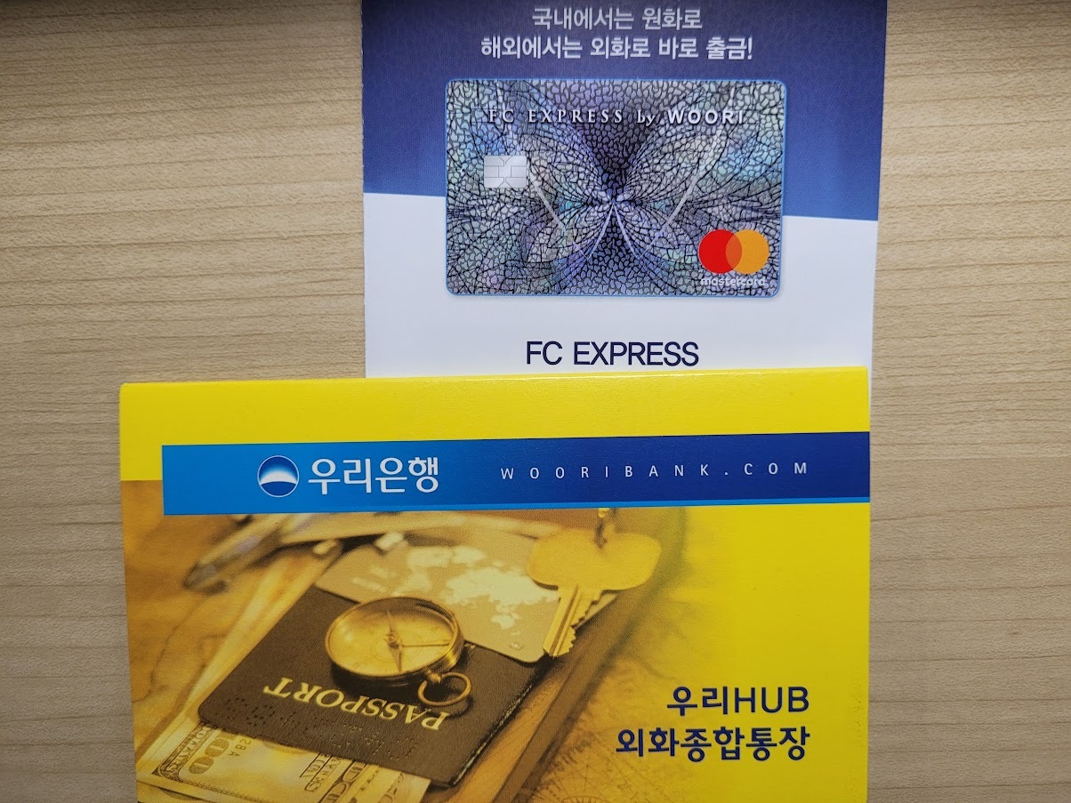 영업 개시 시간에 맞춰서 구영지점에 방문했고 바로 창구에서 외화통장을 만들었습니다. 환율 변동 상황을 보면서 미리 외화계좌에 환전해 두려고 합니다. 미국에서는 주로 Bank of America 계좌를 사용할 예정이지만, 혹시 몰라서 우리은행 원화 계좌와 외화 계좌에 각각 연동되는 체크 카드를 신청했습니다. 카드는 며칠 후에 등기로 받았고, 연회비는 없습니다.