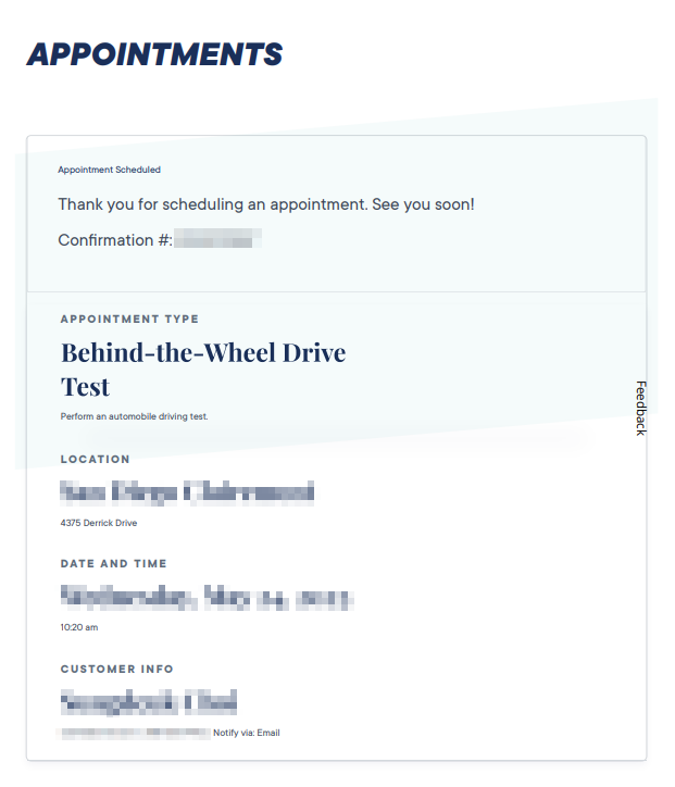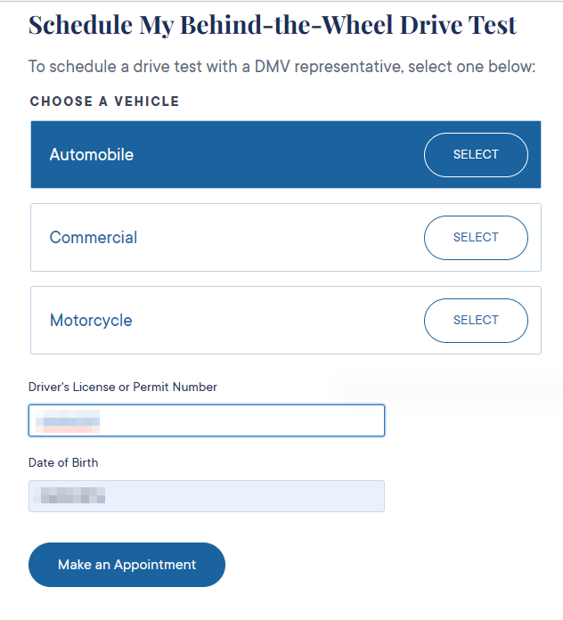 DMV 사이트에서 실기 시험(Behind the wheel drive test)을 예약해야 합니다.
