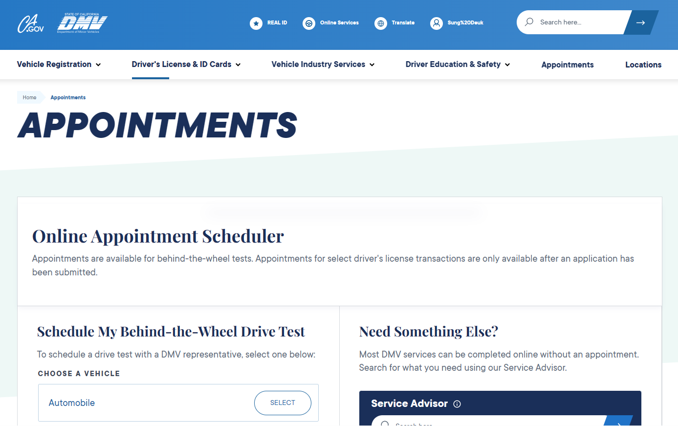 Appointments - Service selection (ca.gov)