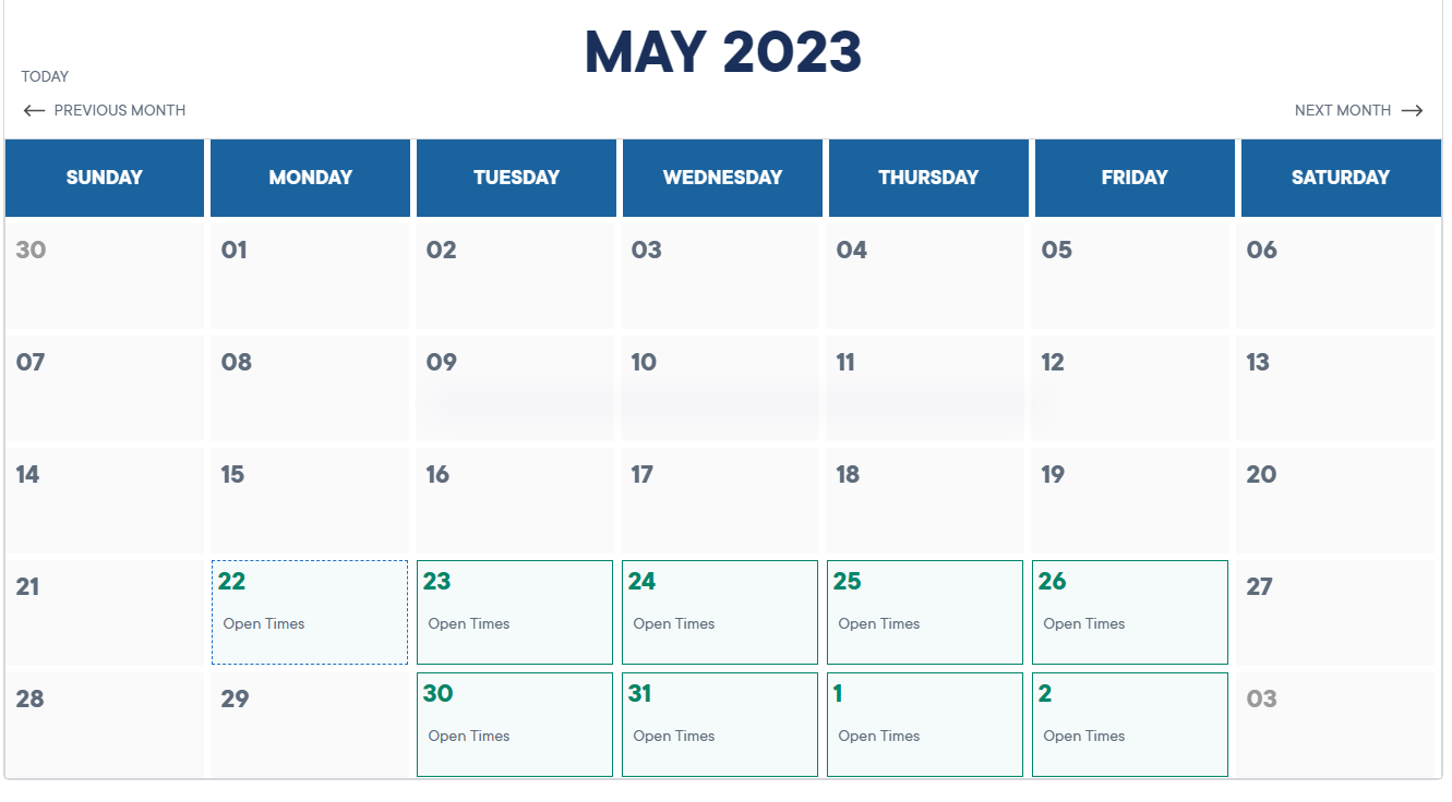 달력에 예약 가능한 날짜가 나옵니다.