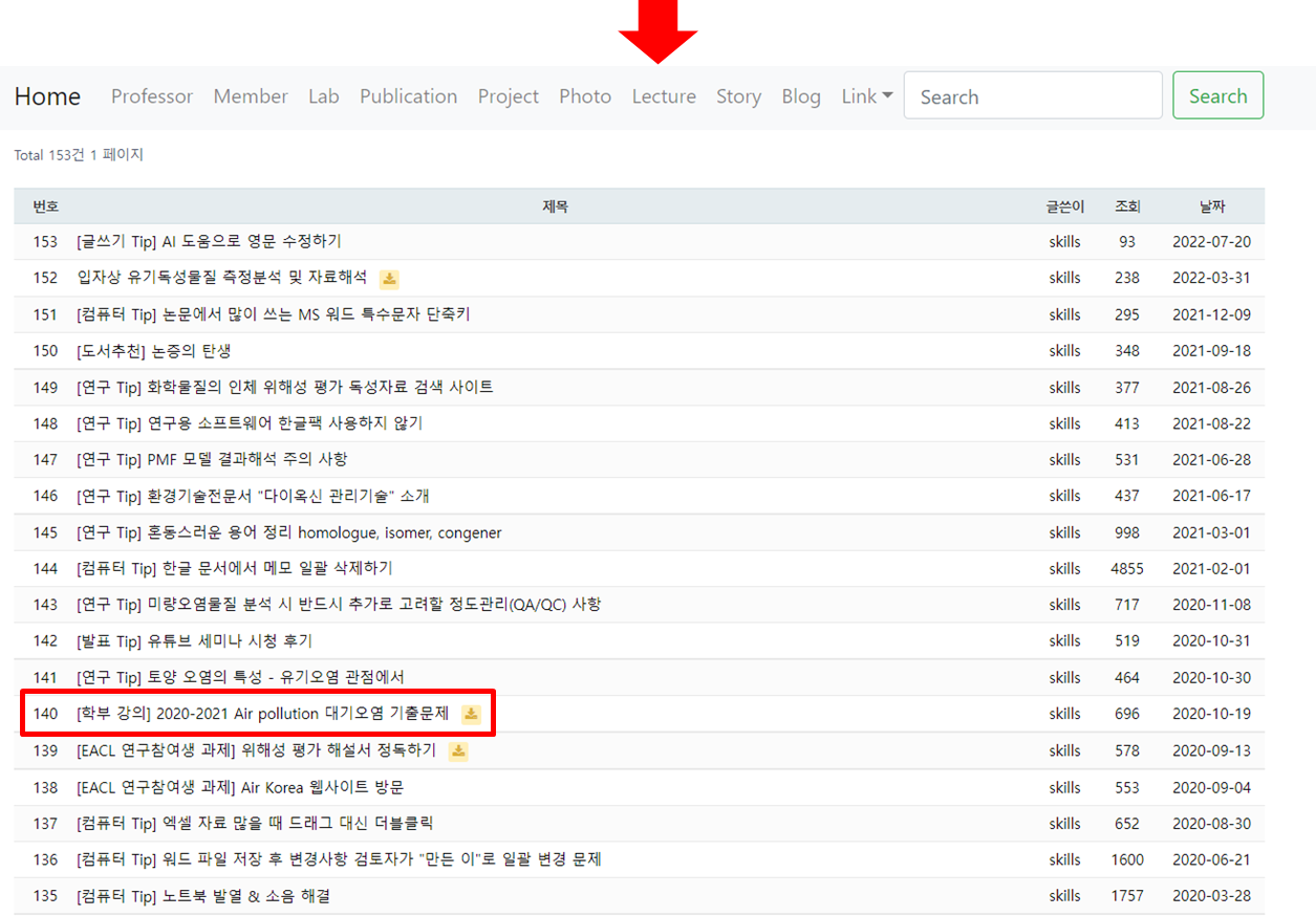 대기오염은 2010년 2학년 전공필수(현재는 선택) 과목으로 개설되어 2022년까지 거의 매년 개설된 과목입니다.