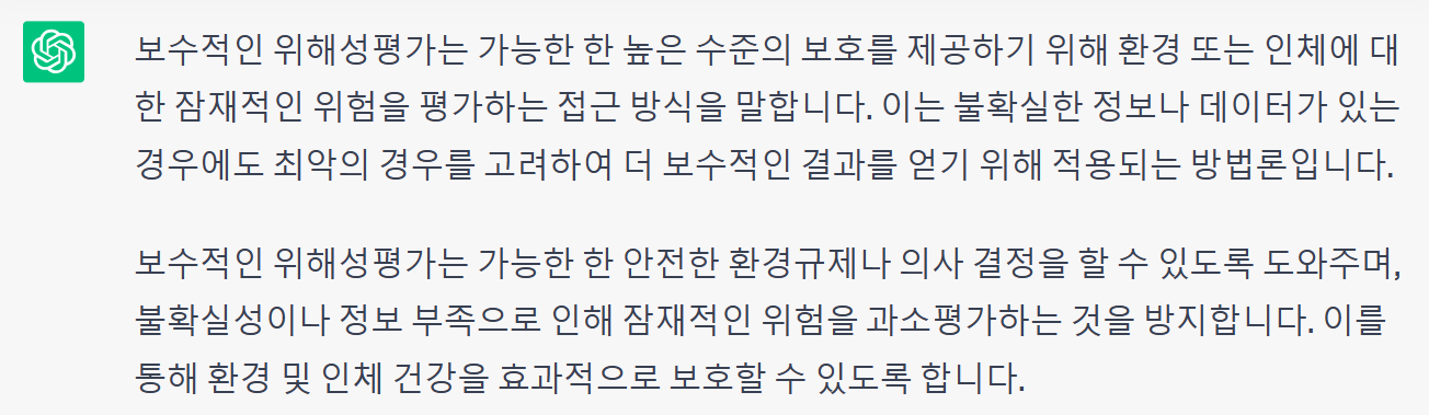 그러므로 환경오염과 위해성 관련 논문이나 보고서를 읽을 때 별다른 설명 없이 '보수적'이라는 용어가 나오면 환경오염과 건강영향을 축소하려는 것이 아니라 그 반대가 됩니다.