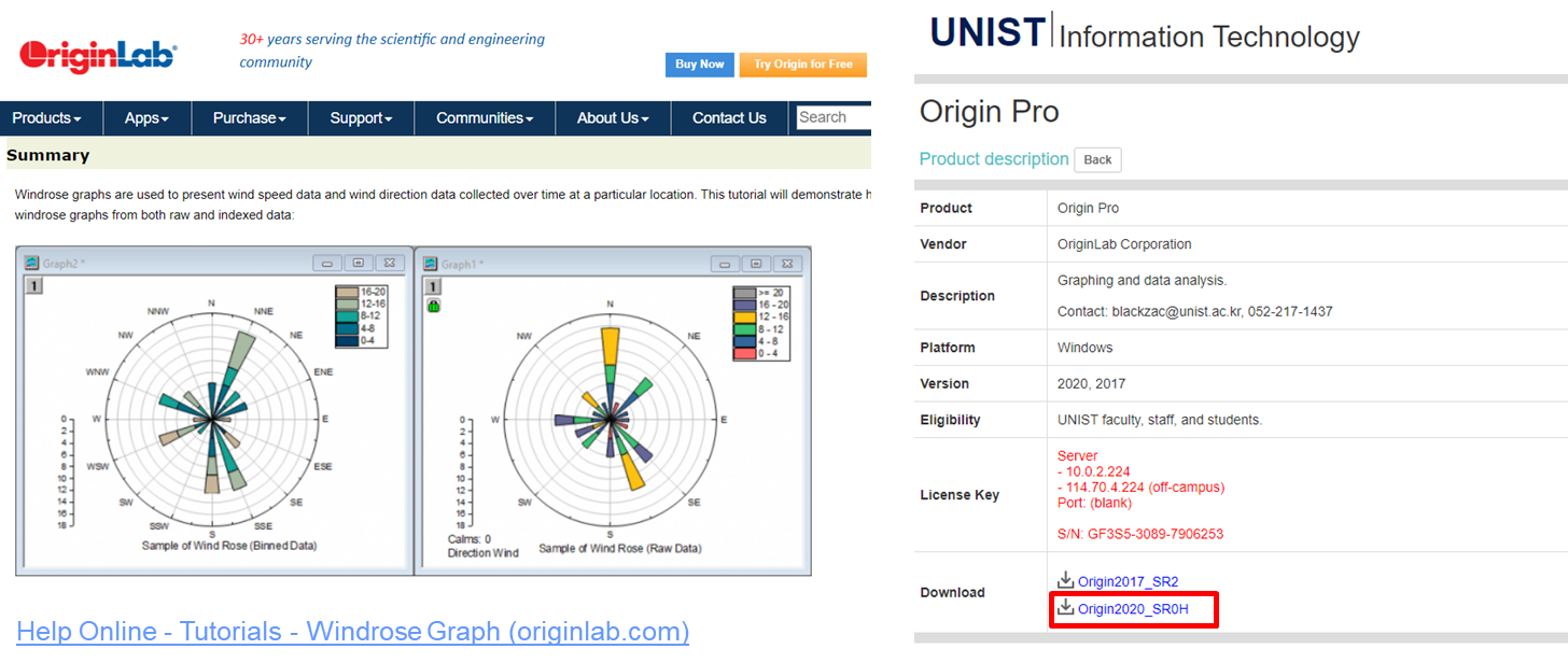 조금 더 쉽게 그리려면 Origin Pro를 사용하면 됩니다. UNIST에는 기관 라이센스가 있기 때문에 포탈 사이트에서 프로그램 다운 받으면 엑셀로 그래프 그리듯이 쉽게 바람장미를 그릴 수 있습니다.