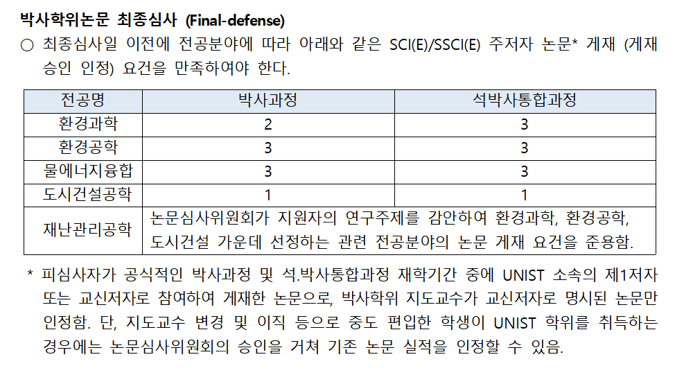 환경분야 기준은 SCIE 저널 논문 주저자 2편(환경과학)과 3편(환경공학)입니다.