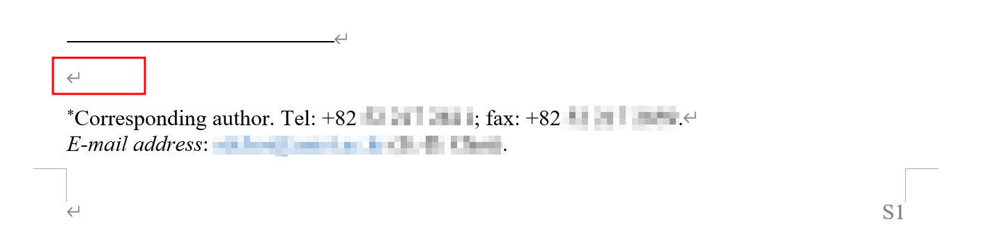 우리 연구실에서는 논문 첫 페이지 교신저자 연락처를 나타낼 때 각주를 사용합니다. 그런데 가끔 학생들이 각주 구분선 아래에 공백(엔터)이 생긴 파일을 보냅니다. 삭제하려고 엔터 표시를 마우스로 클릭해도 선택이 되지 않습니다.
