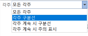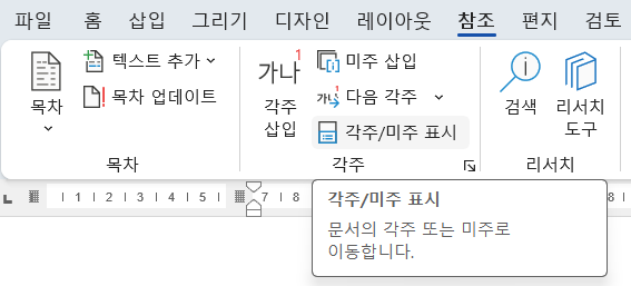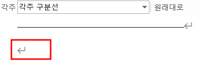 각주 구분선 선택(MS 워드 화면 아래 부분)