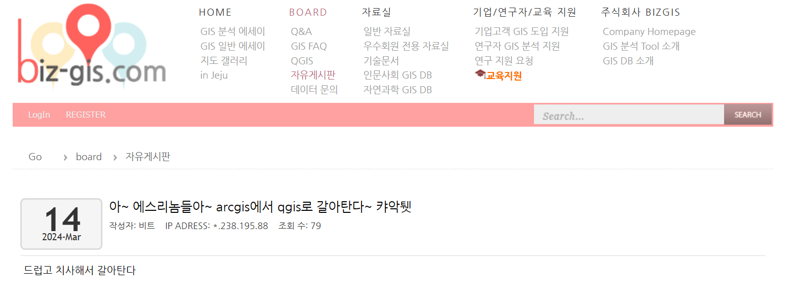 가끔씩 GIS 국내 동향을 파악하려고 biz-gis에 방문합니다. 그런데 아래와 같은 글이 있어서 작성자의 이전 글을 살펴 봤습니다. 한국 Esri에서 personal use 판매를 중단했기 때문에 화가 많이 났나 봅니다.