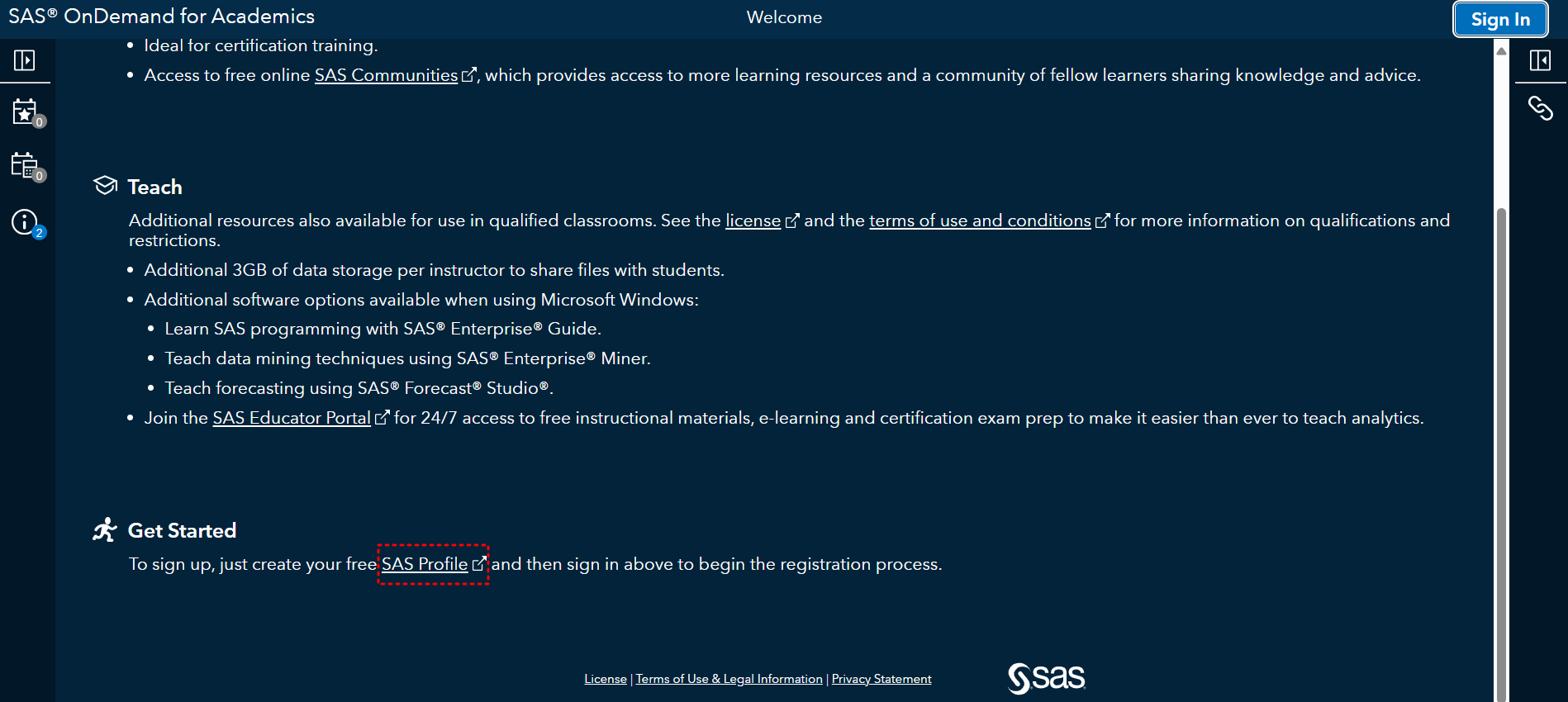 아래 링크에서 무료로 가입(SAS Profile 클릭)해서 온라인으로 SAS를 사용할 수 있습니다.