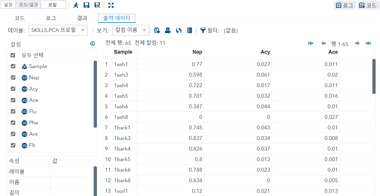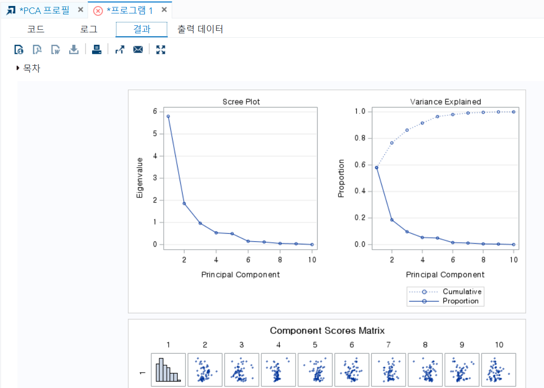 자동으로 다양한 PCA 결과가 산출됩니다.