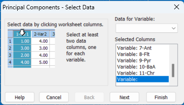 변수와 시료명 컬럼을 지정합니다.
