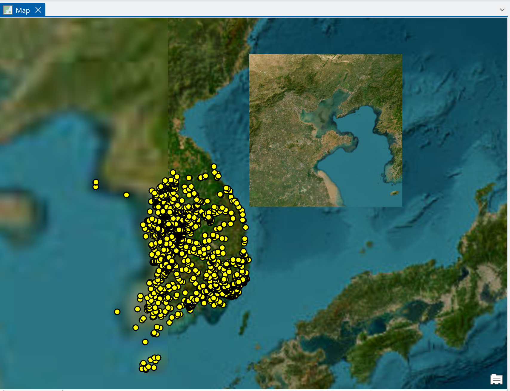 ArcGIS Pro 3.4 (최신 버전)를 새 노트북에 설치한 후에 아래와 같이 정사각형 베이스맵이 중첩되는 문제가 생겼습니다. 공간 영역을 울산 인근으로 한정해도 같은 문제가 생겼습니다.