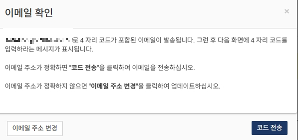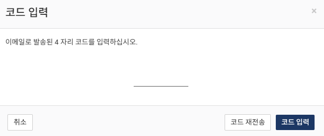 이메일을 입력하고 4자리 코드를 입력합니다.