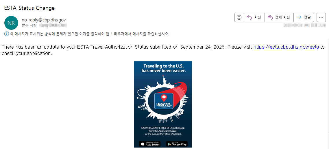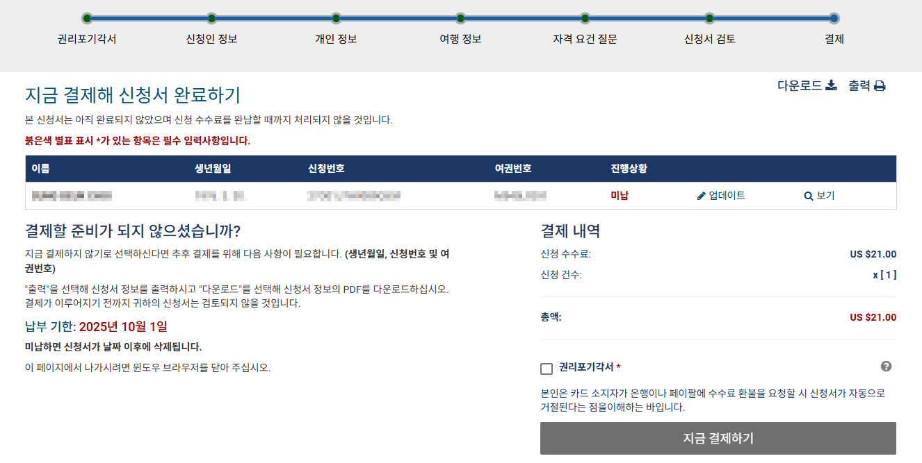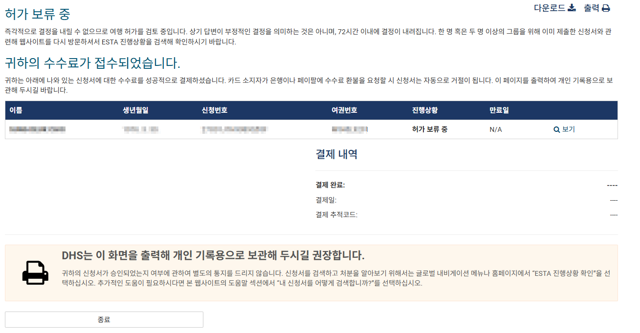 ESTA 신청 사이트에 가서 최종 승인 여부를 확인합니다.