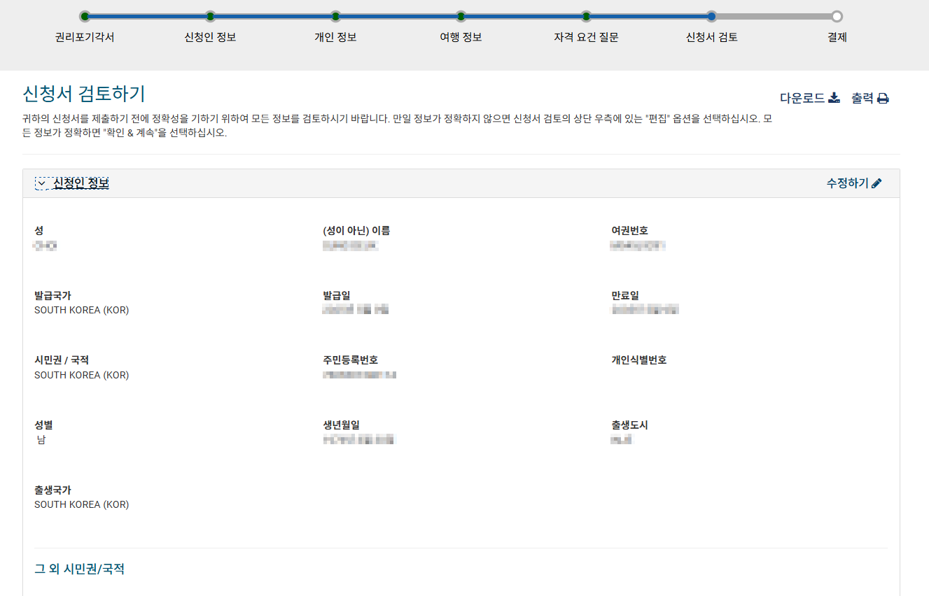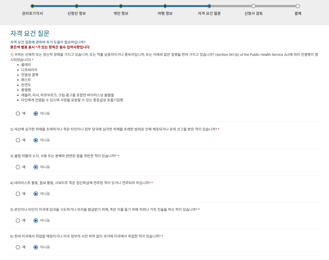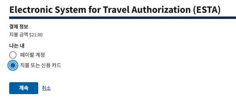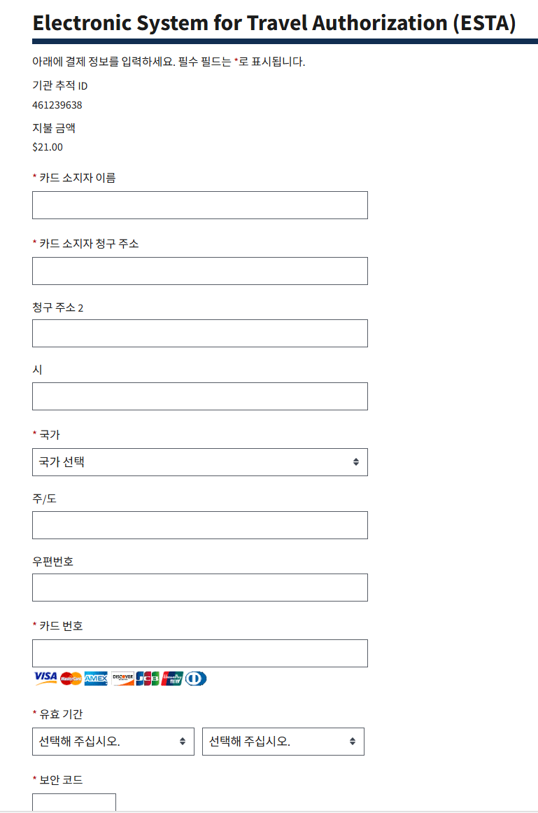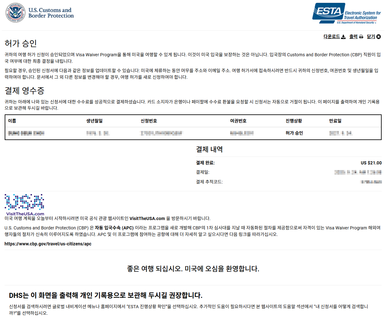 미국 학회 출장을 위해서 ESTA를 발급 받았습니다.