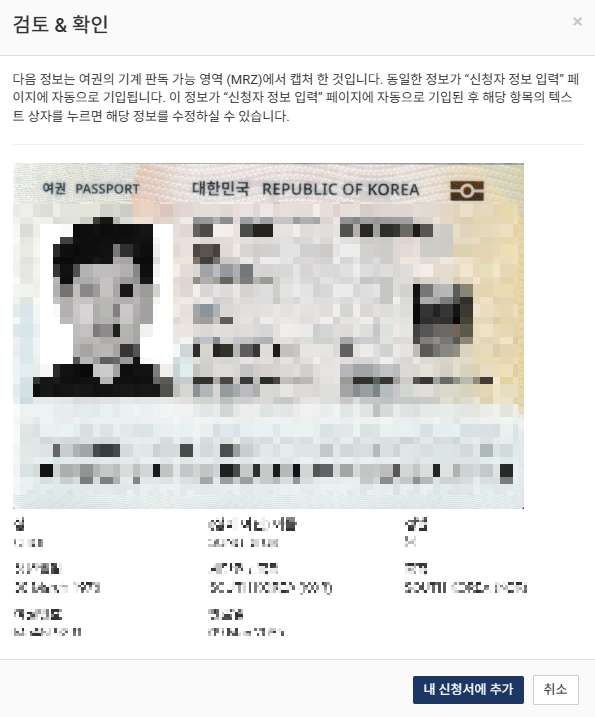 여권에 사진과 생년월일 나온 페이지를 미리 스캔했습니다.
