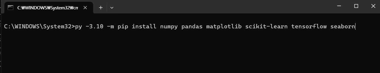 py -3.10 -m pip install numpy pandas matplotlib scikit-learn tensorflow seaborn