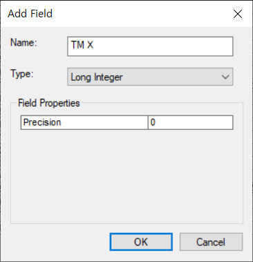 필드명으로 TM X를 입력하고 Type을 Long Integer로 선택합니다.