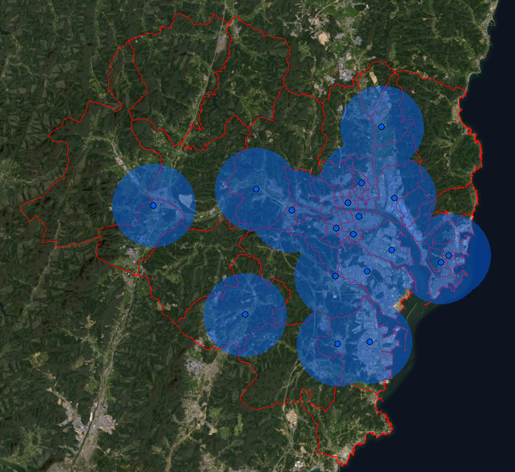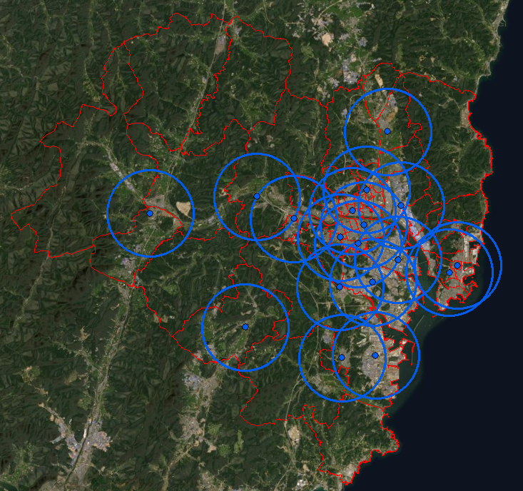 지난 번 도시대기측정소 위치 지도 작성(ArcGIS 10.X 측정소(시료채취지점) 좌표 확인하기)에 이어서 측정소의 대표 반경을 설정하겠습니다. 대기오염 연구에서는 측정소가 담당하는 영역을 표시할 때 사용하기도 하고, 특정 오염원의 영향권을 시각적으로 나타낼 때 사용하기도 합니다.