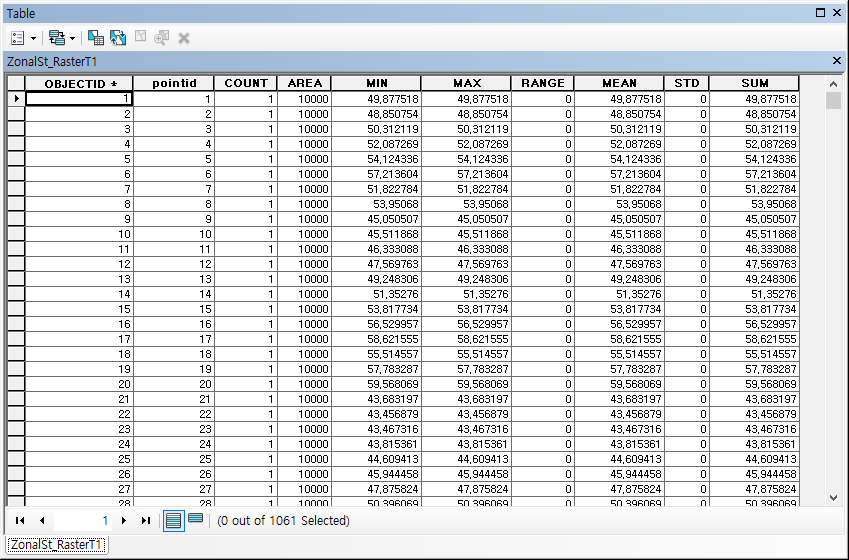 P.S. Zonal Statistics as Table 도구를 사용하면 격자별로 구체적인 자료의 통계값을 알 수 있습니다. 구체적인 설명은 생략합니다.