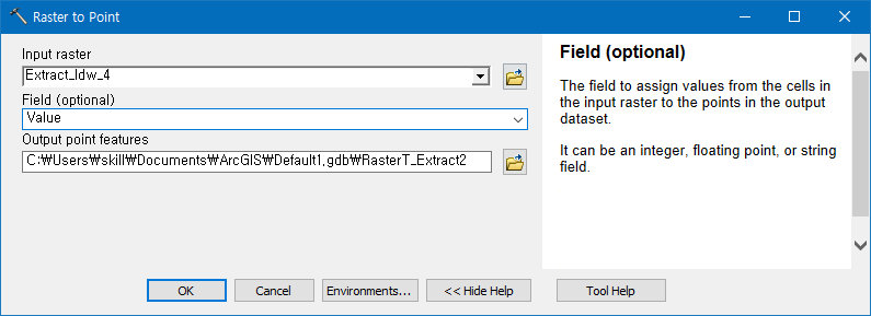 - Raster to Point 도구를 실행합니다.