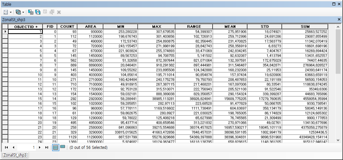 이번에는 Zonal Statistics as Table 도구를 실행합니다.