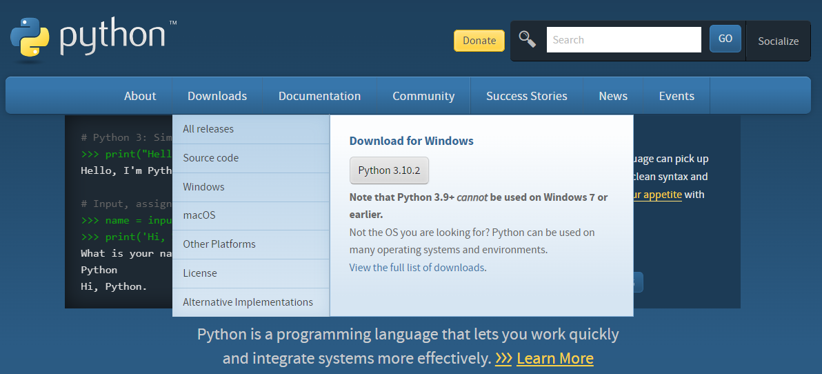 The official home of the Python Programming Language