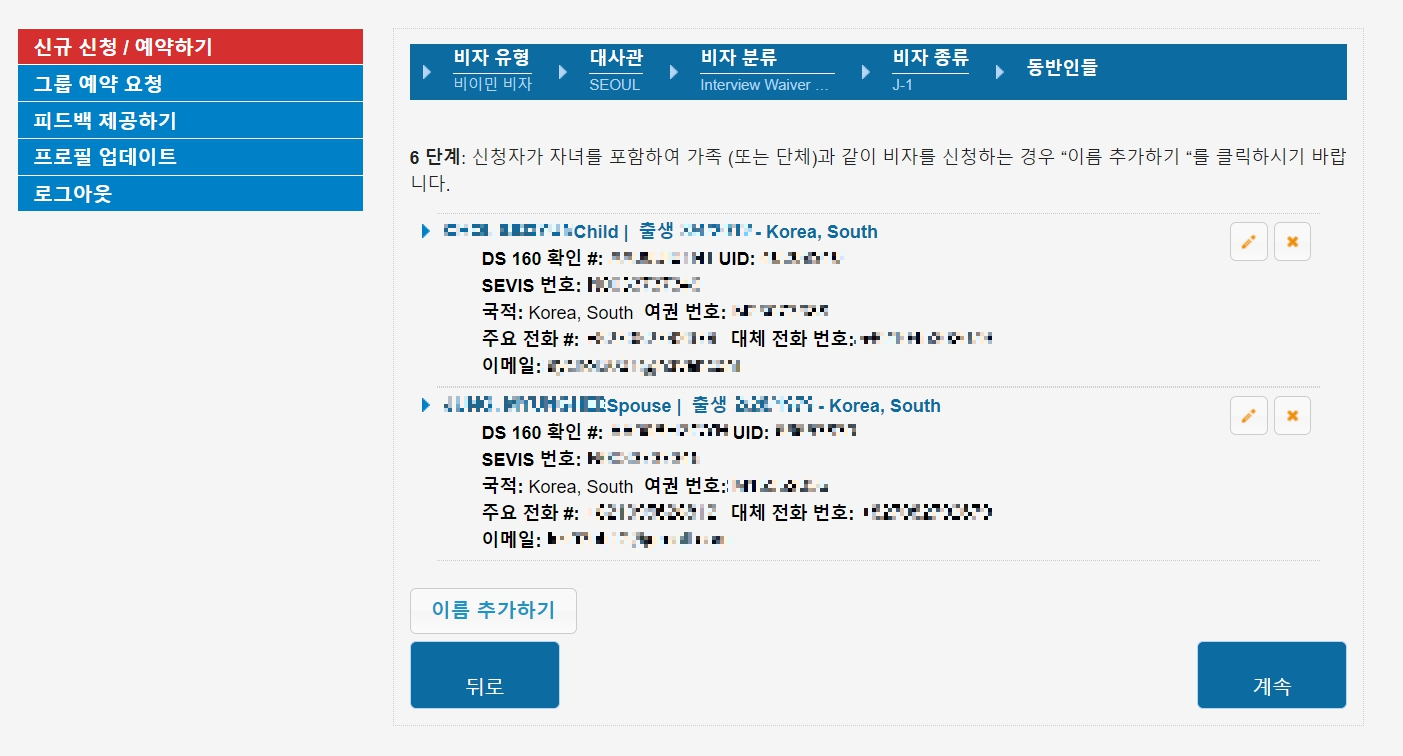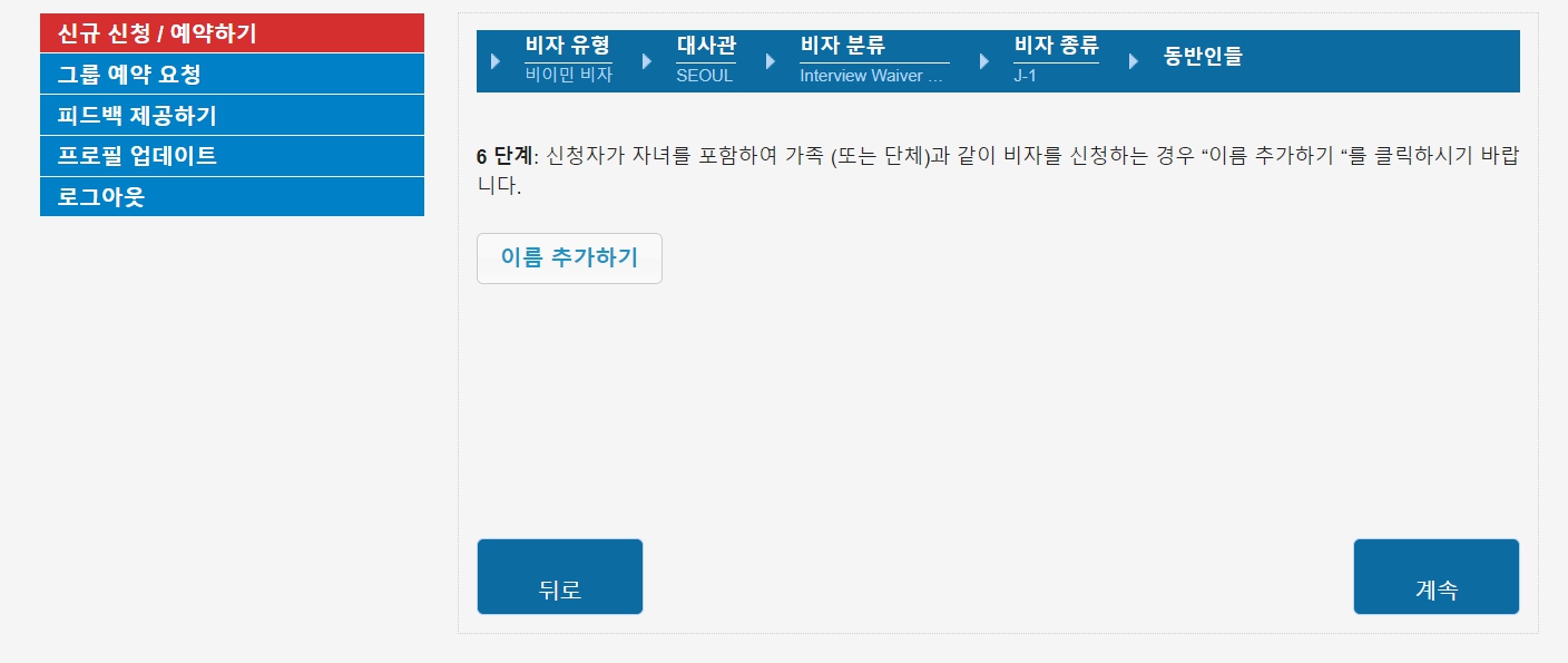 비자 신청은 J1 당사자가 가족을 대표로 아래 사이트에서 신청합니다.