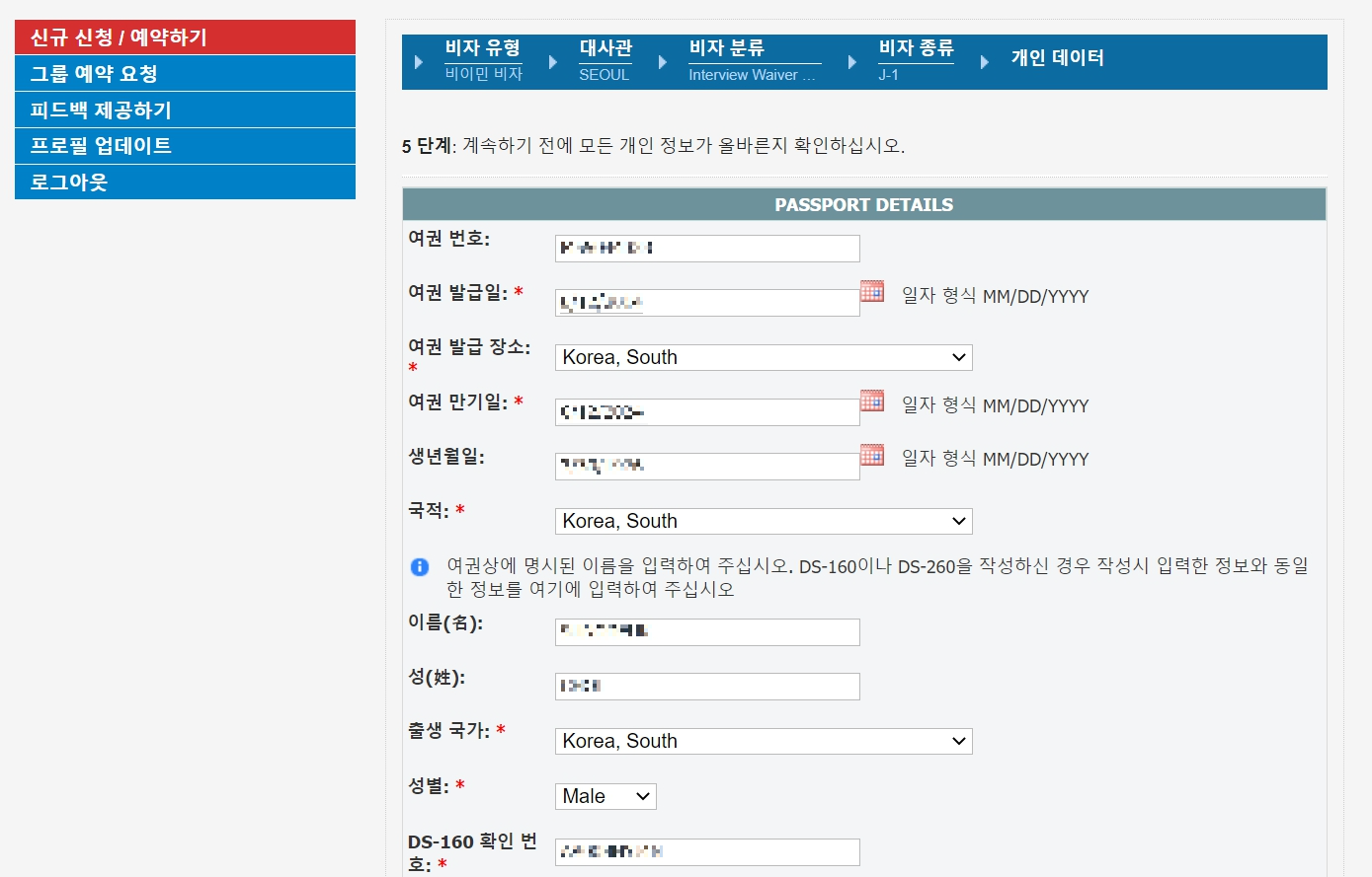 아래 화면에서 J-1을 선택합니다. J2 가족정보는 그 이후에 기입합니다.