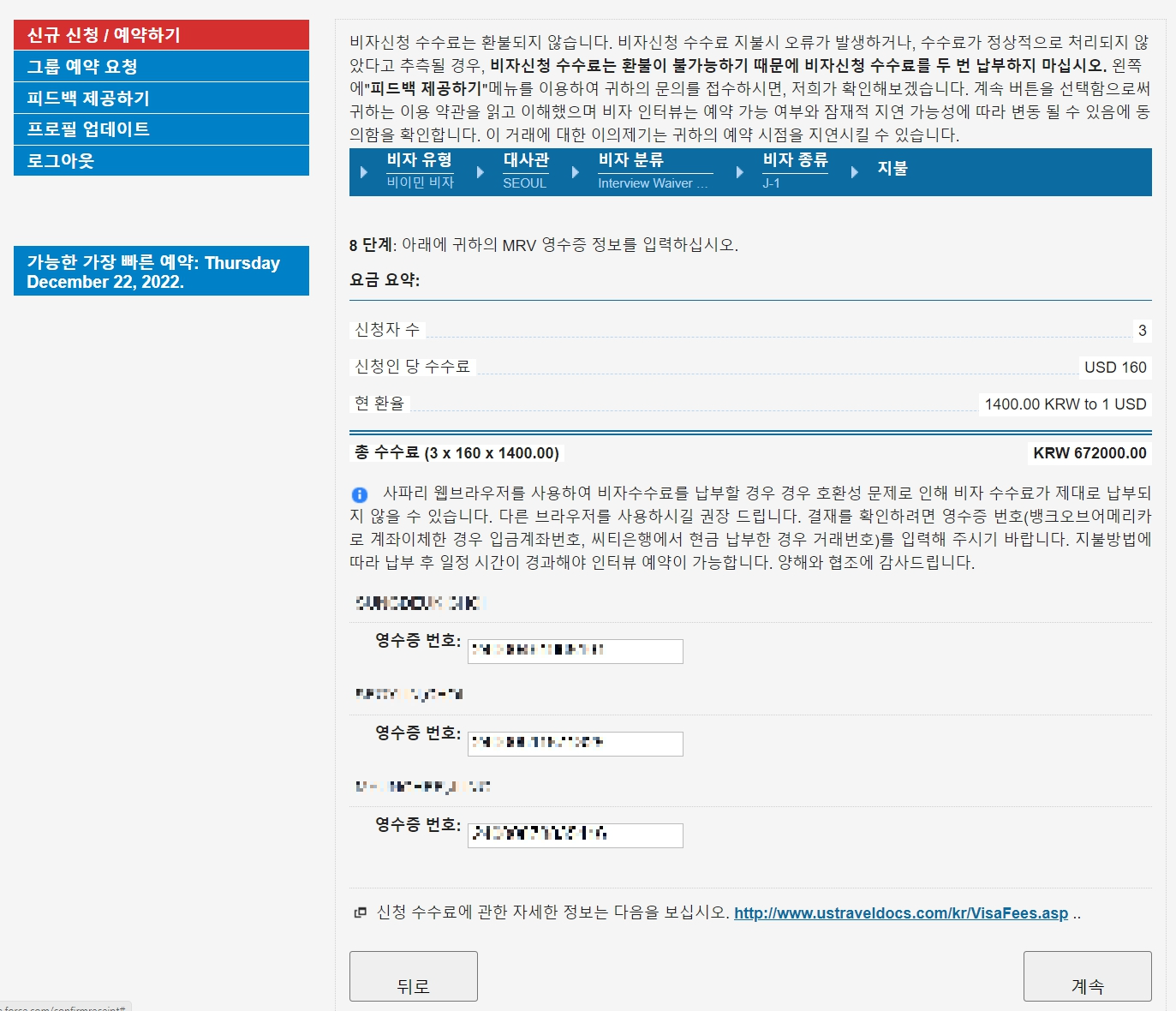 비자신청 수수료 영수증 번호(입금계좌 번호)를 입력합니다.