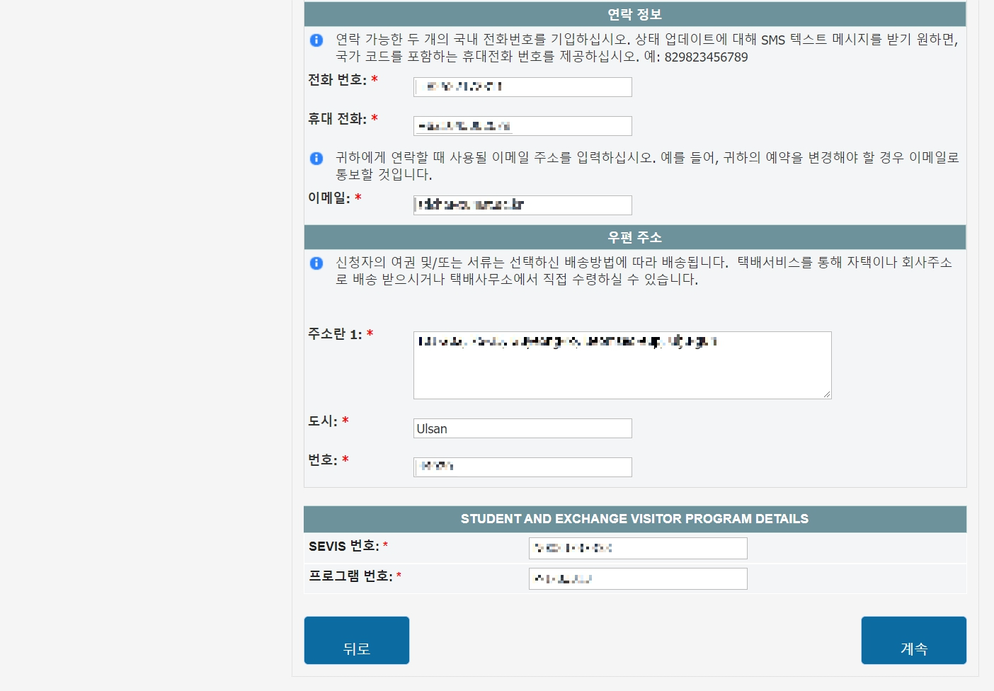 여권, 연락처, 주소 등의 정보를 입력합니다.