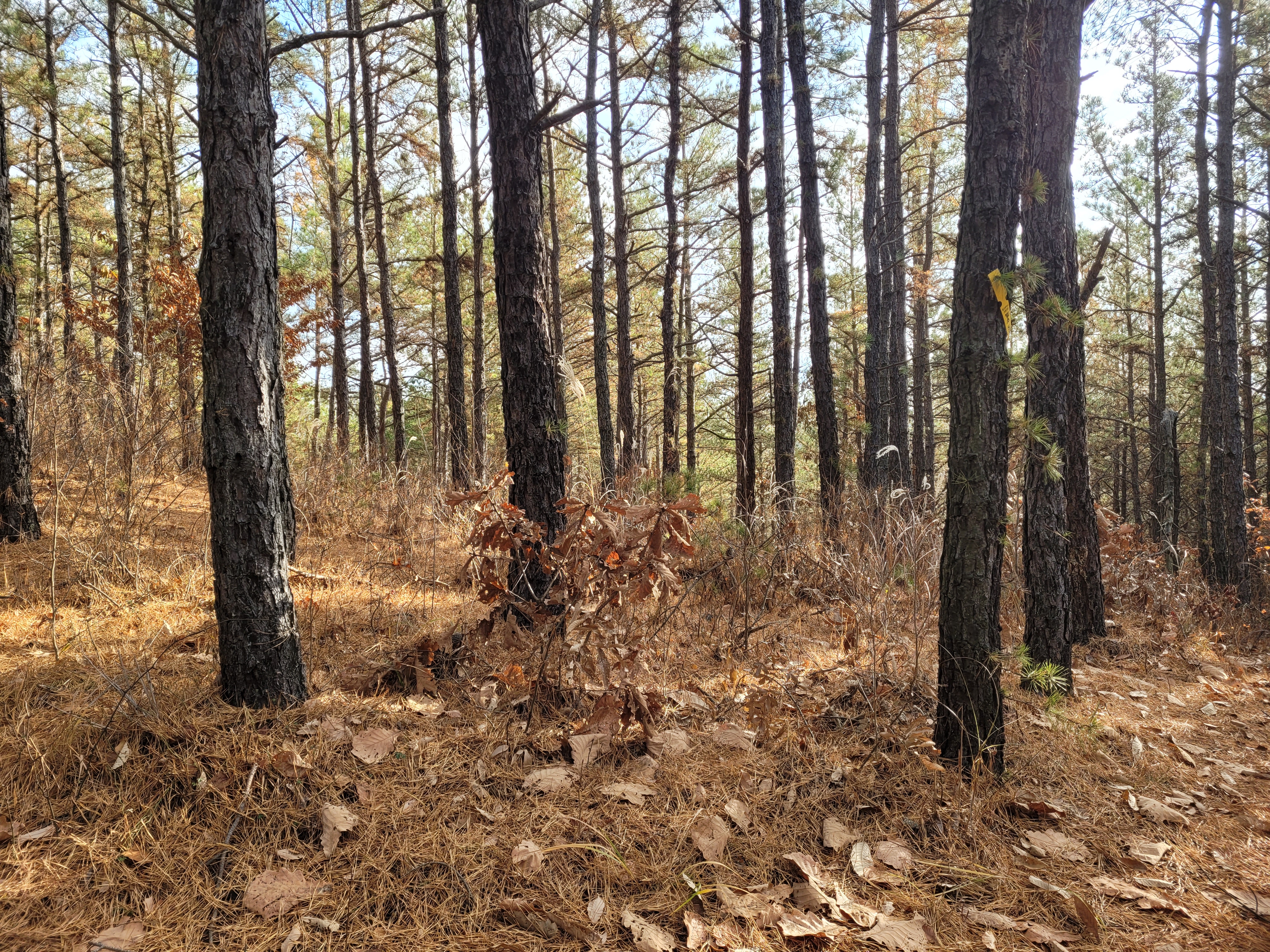 솔잎이 많이 떨어져 있습니다. 솔잎을 밟는 느낌과 소리는 일반 활엽수 낙엽을 밟는 느낌과 많이 다릅니다.