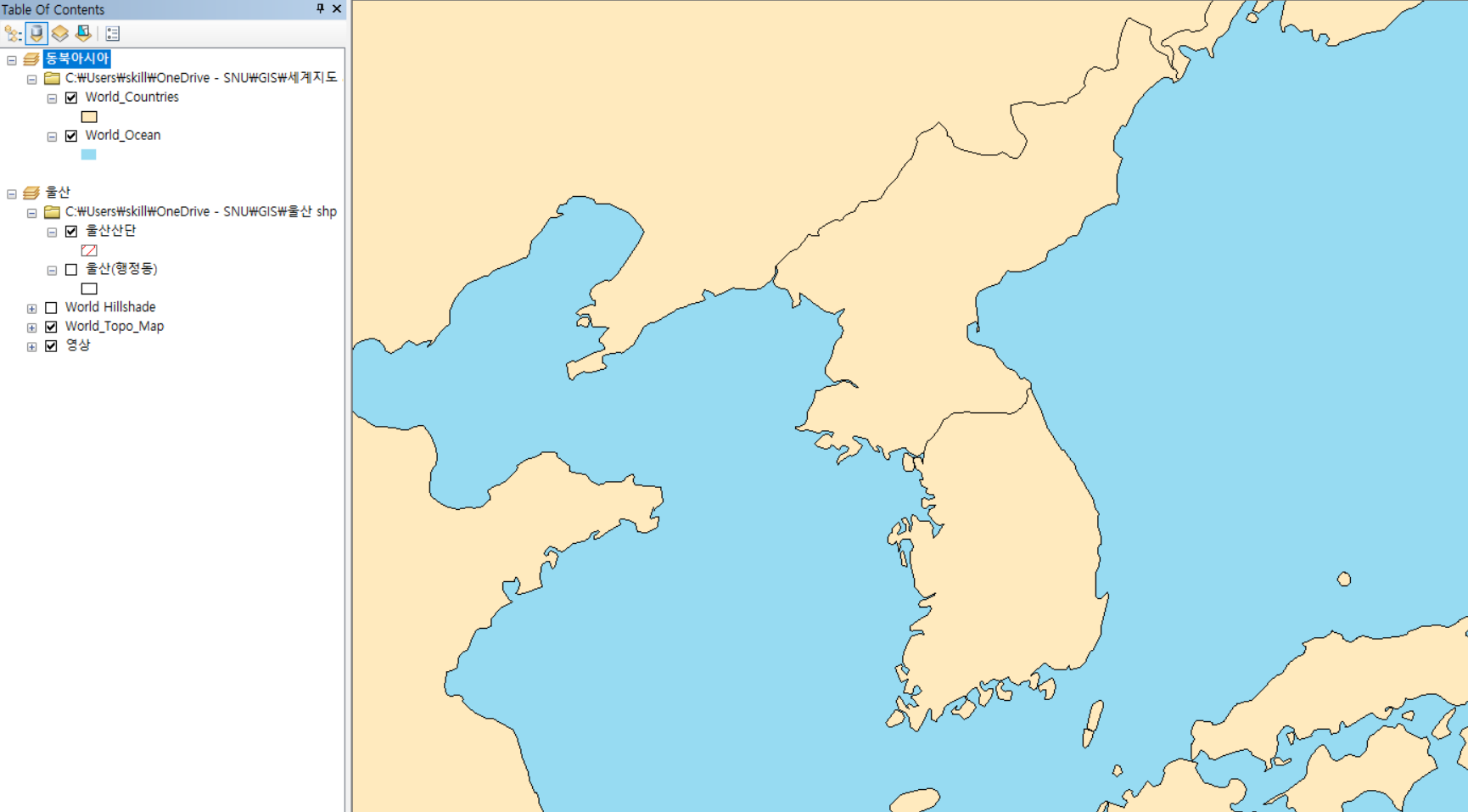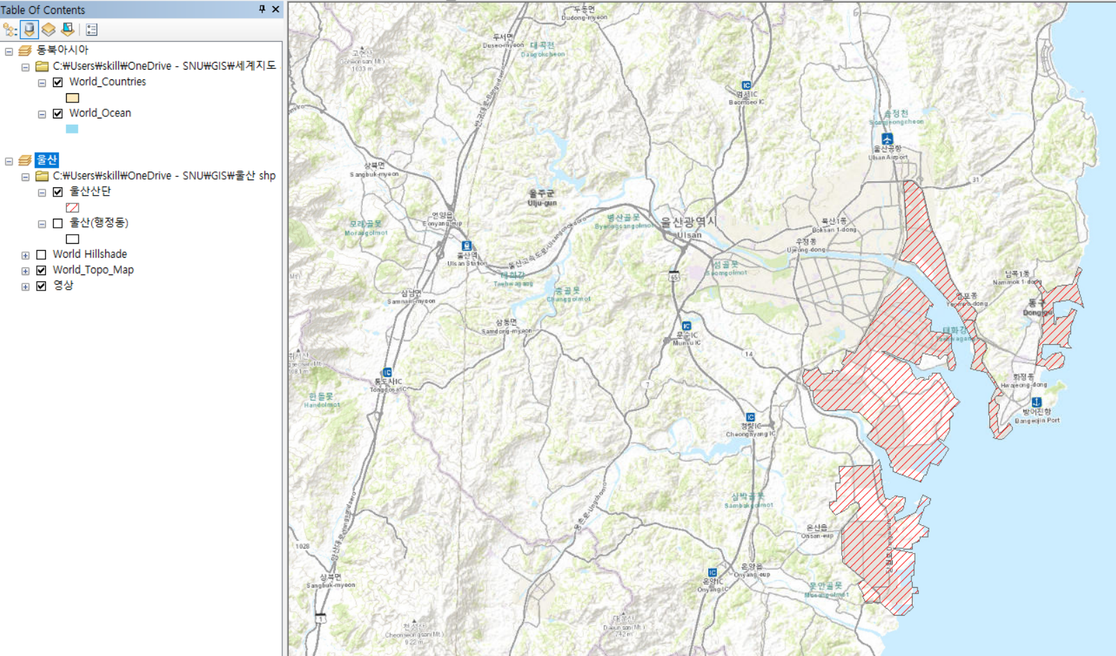 이제 우리나라 지도에 울산이 표시되었습니다. 귀찮으면 파워포인트에서 빨간색 박스를 추가하면 되지만 지도 선택 영역에 따라서 자동으로 Extent indicator 크기가 조정되는 장점이 있습니다.