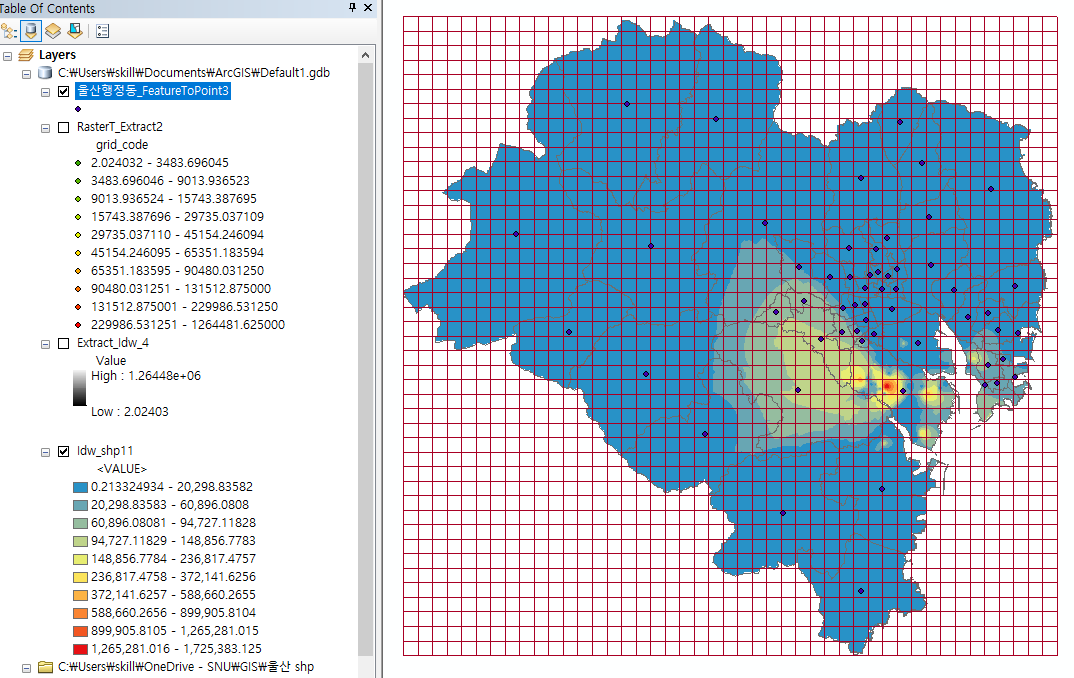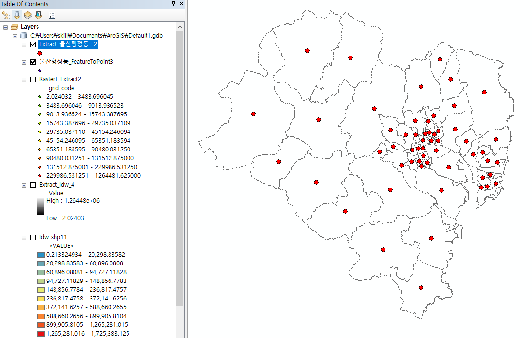ArcGIS 10.X 보간법 결과 행정구역 중심점에 할당하기