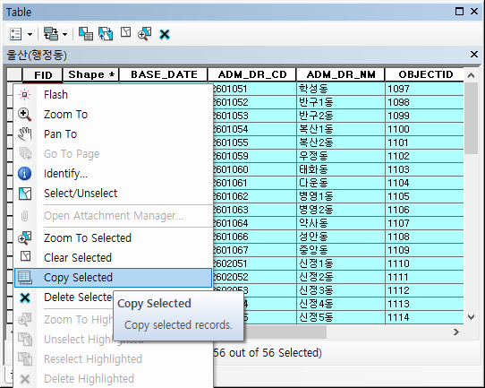 ArcGIS 10.X 속성 테이블 전체 복사해서 엑셀에 넣기